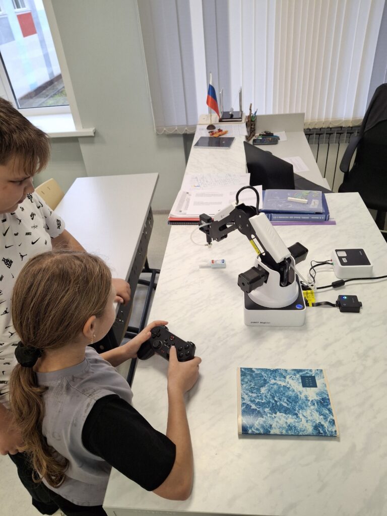 7 ноября учащиеся 5 класса познакомились с роботом-манипулятором Dobot Magician. На уроке они узнали о возможностях этого робота, его применении в жизни и способах управления. Также была проведена практическая работа, в ходе которой ученики перемещали различные предметы.